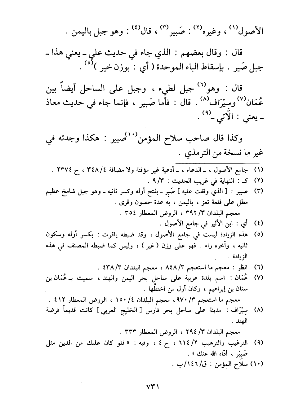 قال: وهو جبل لطيء، وجبل على الساحل أيضاً بين عُمَان وسيْرَاف. قال: فأما صَبير، فإنما جاء في حديث معاذ -يعني: الآتي-.