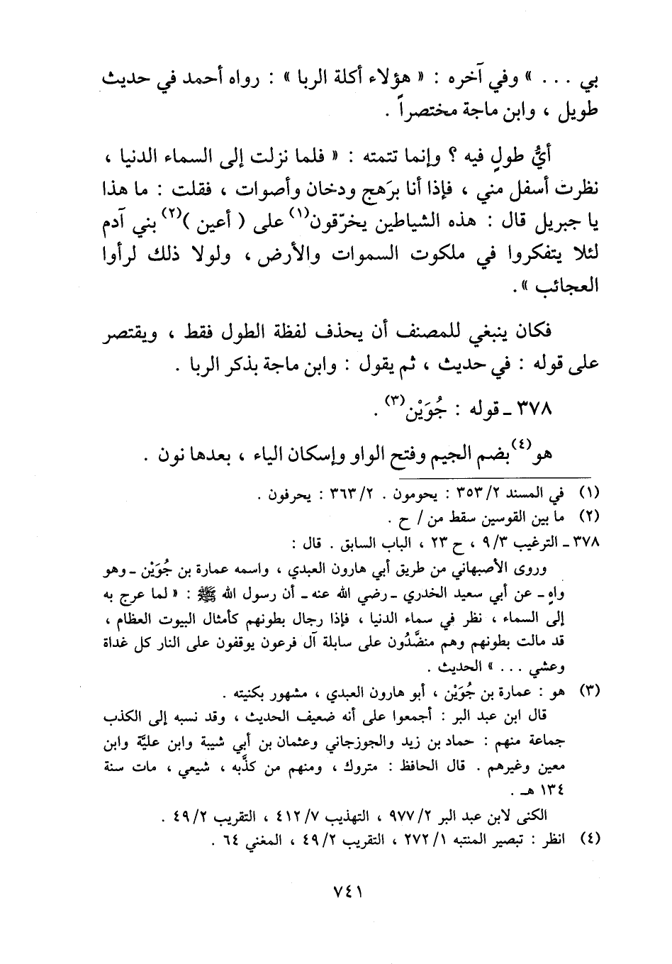 أيُّ طولٍ فيه؟ وإنما تتمته: "فلما نزلت إلى السماء الدنيا، نظرت أسفل مني، فإذا أنا برَهج ودخان وأصوات، فقلت: ما هذا يا جبريل قال: هذه الشياطين يخرّقون على (أعين) بني آدم لئلا يتفكروا في ملكوت السموات والأرض، ولولا ذلك لرأوا العجائب".