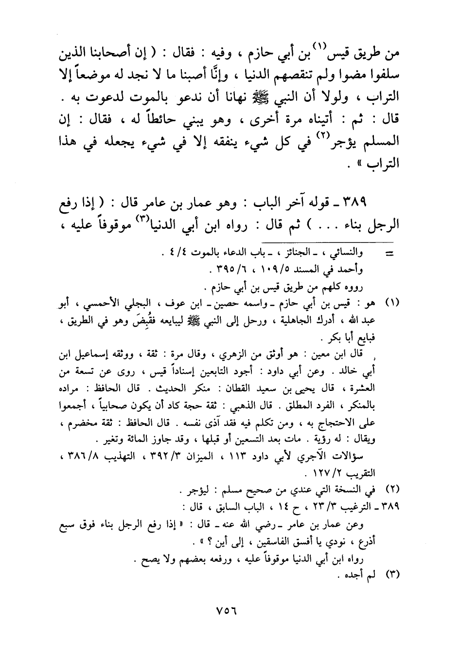 قال: ثم: أتيناه مرة أخرى، وهو يبني حائطاً له، فقال: إن المسلم يؤجر في كل شيء ينفقه إلافي شيء يجعله في هذا التراب".