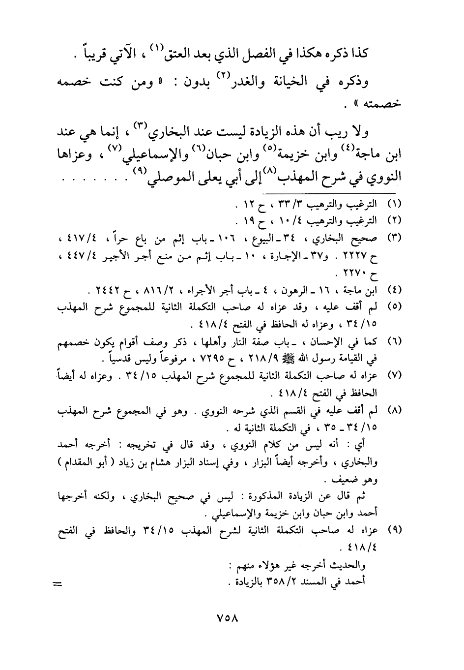 ولا ريب أن هذه الزيادة ليست عند البخاري، إنما هي عند ابن ماجة وابن خزيمة وابن حبان والإسماعيلي، وعزاها النووي في شرح المهذب إلى أبي يعلى الموصلي