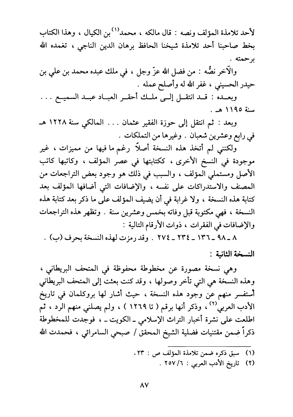 ٨ - ٩٨ - ١٣٦ - ٢٣٤ - ٢٧٤. وقد رمزت لهذه النسخة بحرف (ب).