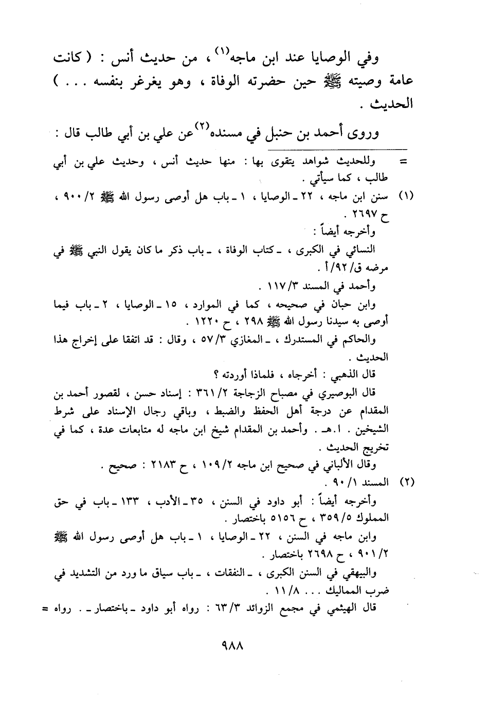 وفي الوصايا عند ابن ماجه، من حديث أنس: (كانت عامة وصيته - صلى الله عليه وسلم - حين حضرته الوفاة، وهو يغرغر بنفسه ... ) الحديث.