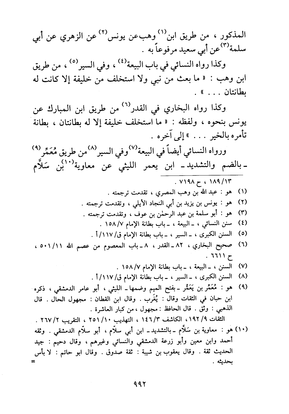ورواه النسائي أيضاً في البيعة وفي السير من طريق مُعَمِّر -بالضم والتشديد- ابن يعمر الليثي عن معاوية بن سَلاَّم