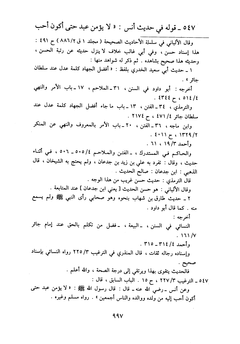 ٥٤٧ - قوله في حديث أنس: "لا يؤمن عبد حتى أكون أحب