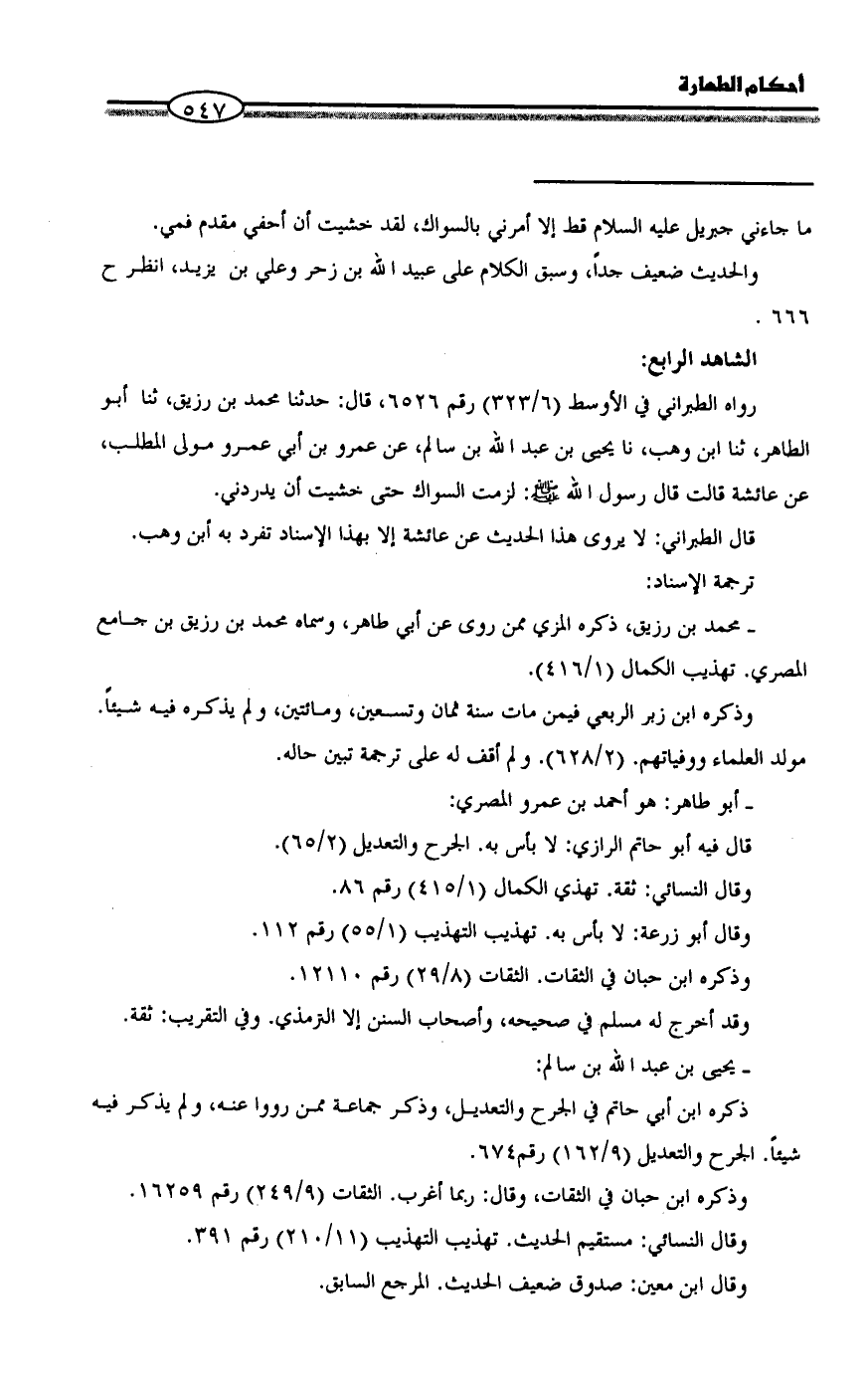 رواه الطبراني في الأوسط (6/ 323) رقم 6526، قال: حدثنا محمد بن رزيق، ثنا أبو الطاهر، ثنا ابن وهب، نا يحيى بن عبد الله بن سالم، عن عمرو بن أبي عمرو مولى المطلب، عن عائشة قالت قال رسول الله - صلى الله عليه وسلم -: لزمت السواك حتى خشيت أن يدردني.