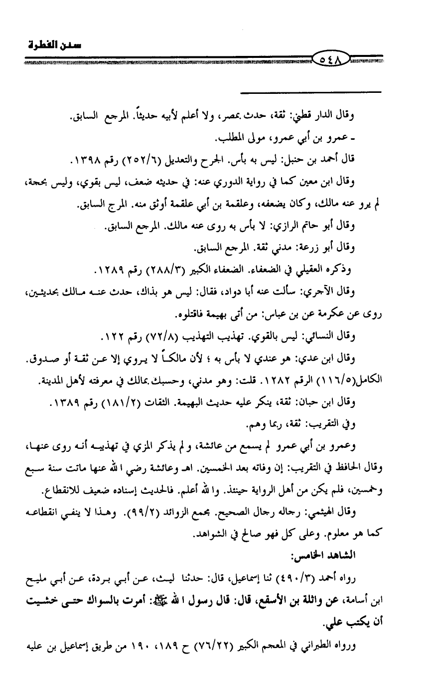 رواه أحمد (3/ 490) ثنا إسماعيل، قال: حدثنا ليث، عن أبي بردة، عن أبي مليح بن أسامة، عن واثلة بن الأسقع، قال: قال رسول الله - صلى الله عليه وسلم -: أمرت بالسواك حتى خشيت أن يكتب علي.