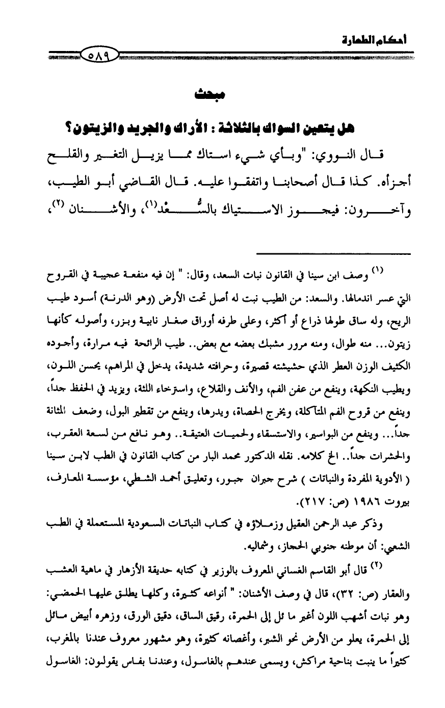 هل يتعين السواك بالثلاثة الأراك والجريد والزيتون؟