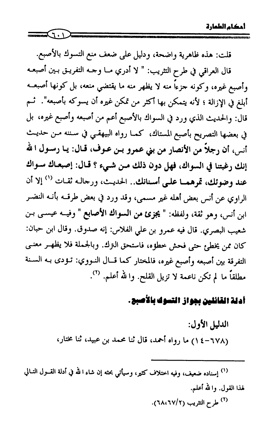 قلت: هذه ظاهرية واضحة، ودليل على ضعف منع التسوك بالأصبع.
