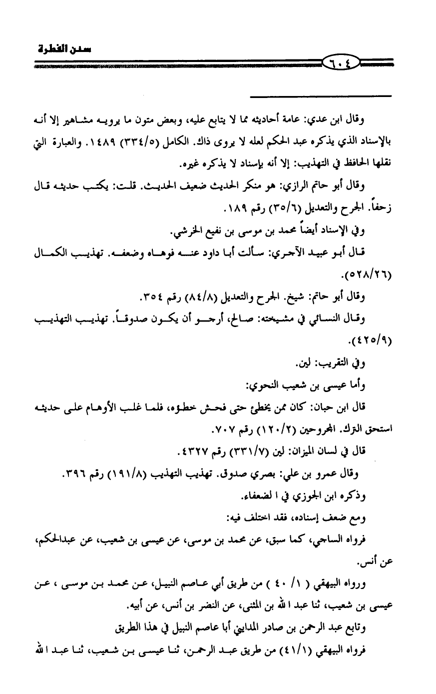 ورواه البيهقي (1/ 40) من طريق أبي عاصم النبيل، عن محمد بن موسى، عن عيسى بن شعيب، ثنا عبد الله بن المثنى، عن النضر بن أنس، عن أبيه.