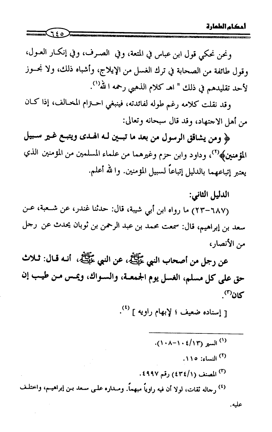 {ومن يشاقق الرسول من بعد ما تبين له الهدى ويتبع غير سبيل المؤمنين} (¬2)، وداود وابن حزم وغيرهما من علماء المسلمين من المؤمنين الذي يعتبر إتباعهما بالدليل إتباعاً لسبيل المؤمنين. والله أعلم.