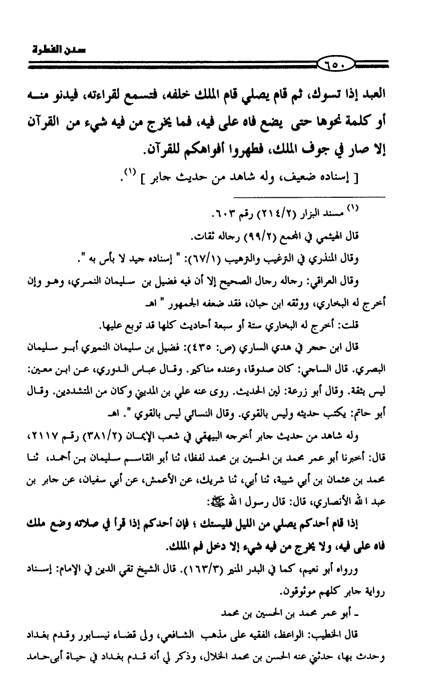 ورواه أبو نعيم، كما في البدر المنير (3/ 163). قال الشيخ تقي الدين في الإمام: إسناد رواية جابر كلهم موثوقون.