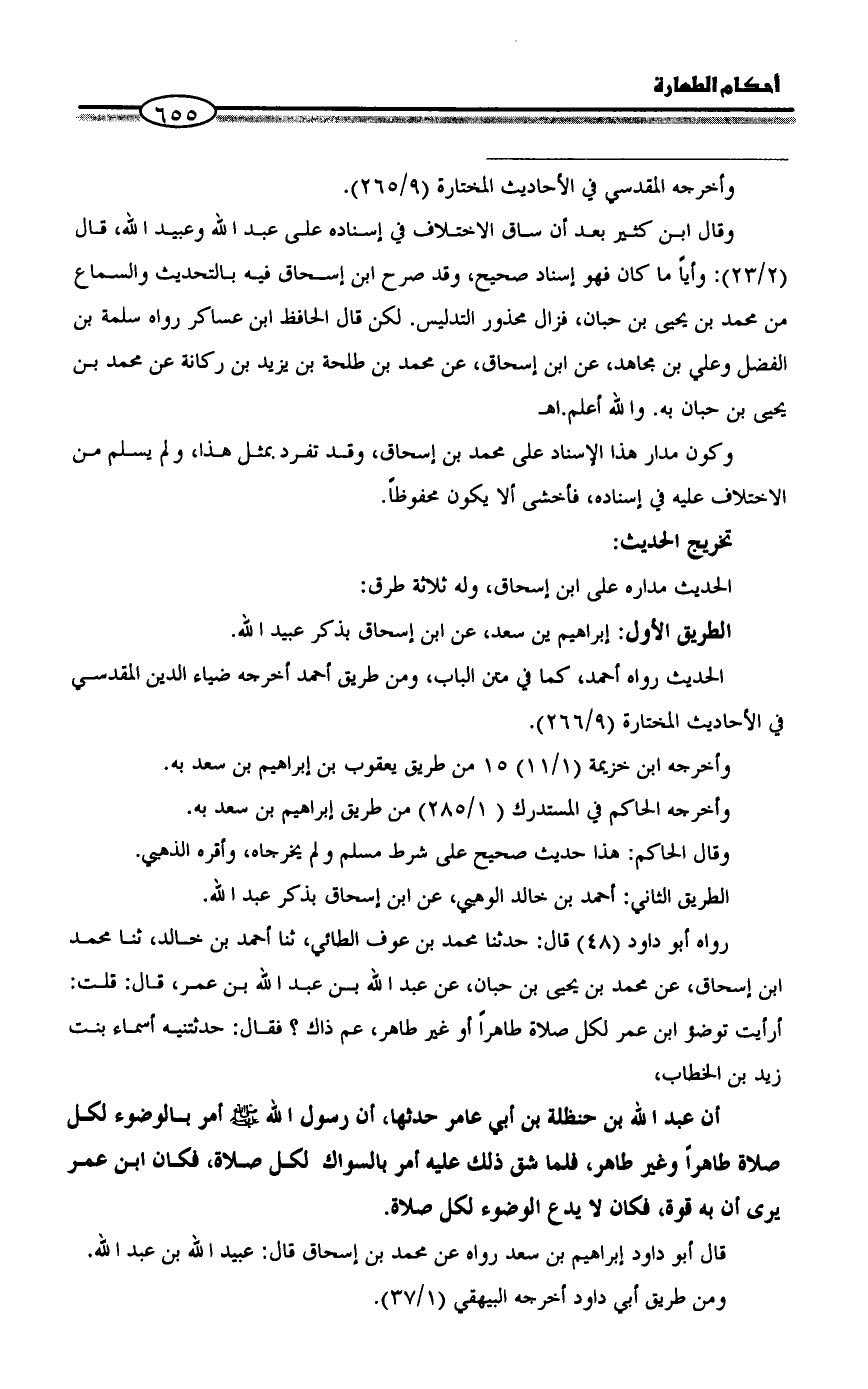 وقال ابن كثير بعد أن ساق الاختلاف في إسناده على عبد الله وعبيد الله، قال (2/ 23): وأياً ما كان فهو إسناد صحيح، وقد صرح ابن إسحاق فيه بالتحديث والسماع من محمد بن يحيى بن حبان، فزال محذور التدليس. لكن قال الحافظ ابن عساكر رواه سلمة بن الفضل وعلي بن مجاهد، عن ابن إسحاق، عن محمد بن طلحة بن يزيد بن ركانة عن محمد بن يحيى بن حبان به. والله أعلم. اهـ