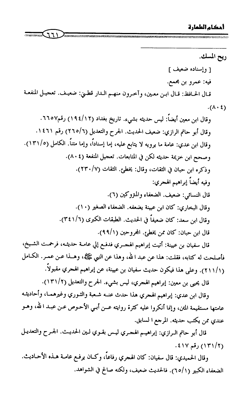 وقال ابن عدي: إبراهيم الهجري هذا حدث عنه شعبة والثوري وغيرهما، وأحاديثه عامتها مستقيمة المتن، وإنما أنكروا عليه كثرة روايته عن أبي الأحوص عن عبد الله، وهو عندي ممن يكتب حديثه. المرجع السابق.