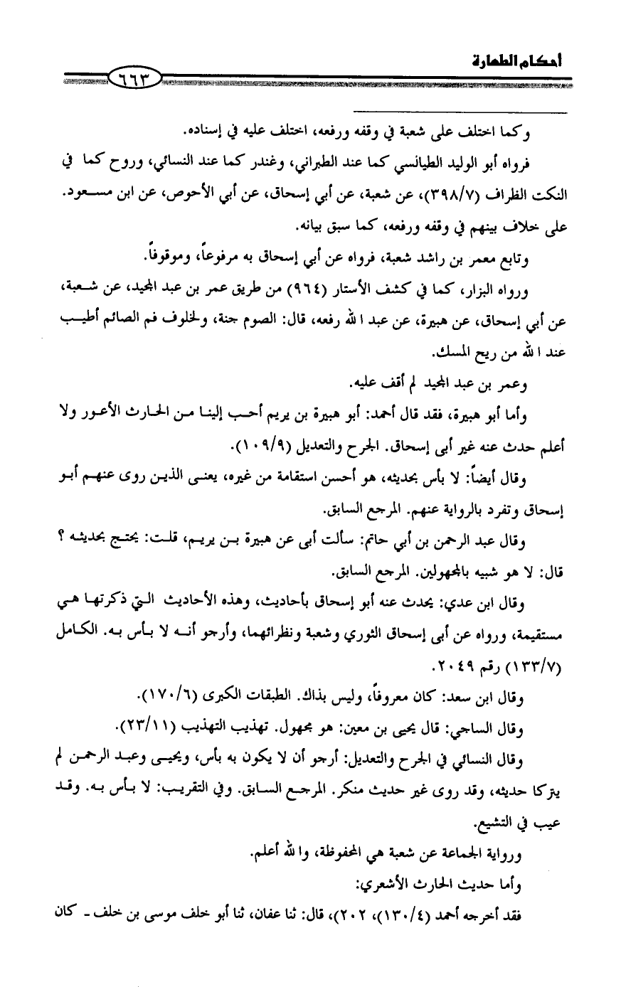 وقال أيضاً: لا بأس بحديثه، هو أحسن استقامة من غيره، يعنى الذين روى عنهم أبو إسحاق وتفرد بالرواية عنهم. المرجع السابق.