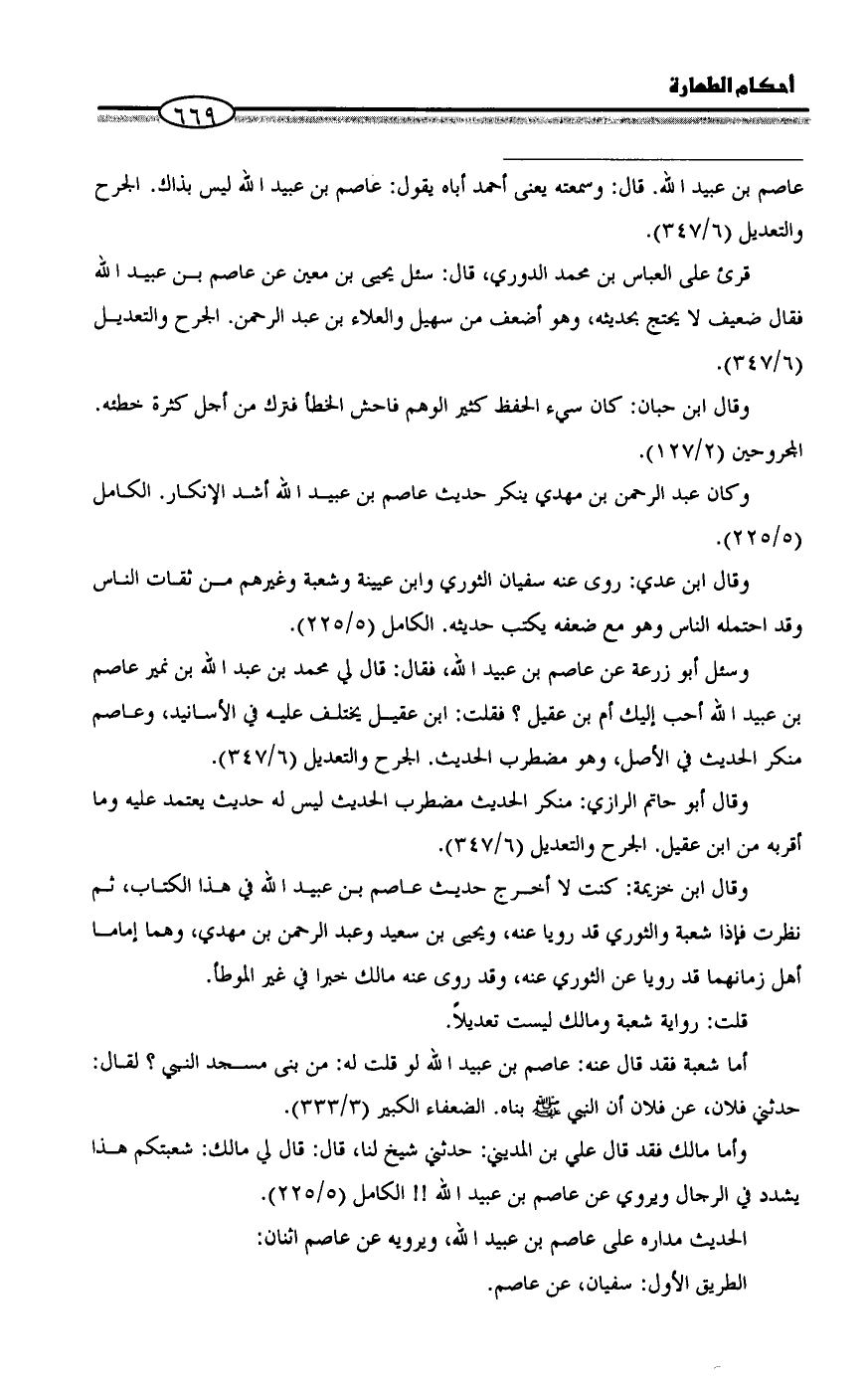 = عاصم بن عبيد الله. قال: وسمعته يعنى أحمد أباه يقول: عاصم بن عبيد الله ليس بذاك. الجرح والتعديل (6/ 347).