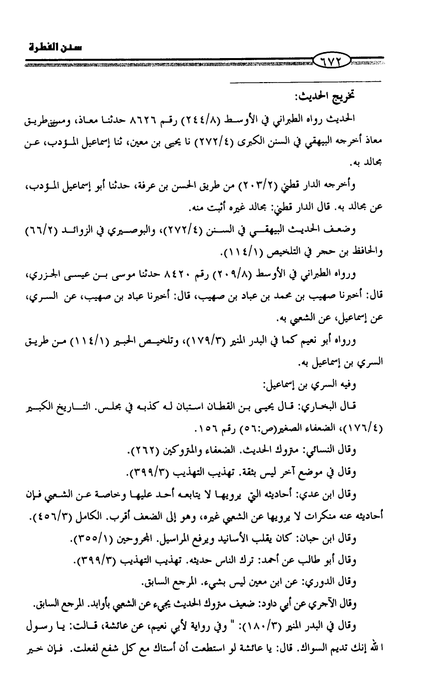ورواه أبو نعيم كما في البدر المنير (3/ 179)، وتلخيص الحبير (1/ 114) من طريق السري بن إسماعيل به.