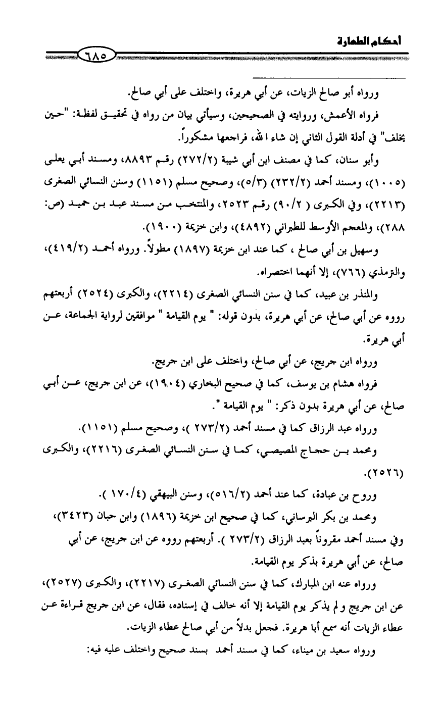 ورواه عنه ابن المبارك، كما في سنن النسائي الصغرى (2217)، والكبرى (2527)، عن ابن جريج ولم يذكر يوم القيامة إلا أنه خالف في إسناده، فقال، عن ابن جريج قراءة عن عطاء الزيات أنه سمع أبا هريرة. فجعل بدلاً من أبي صالح عطاء الزيات.