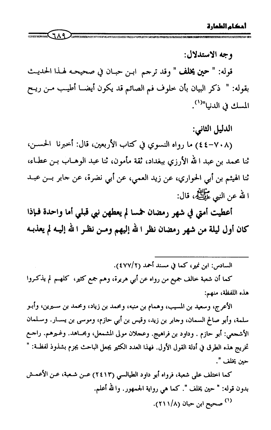 قوله: " حين يخلف " وقد ترجم ابن حبان في صحيحه لهذا الحديث بقوله: " ذكر البيان بأن خلوف فم الصائم قد يكون أيضا أطيب من ريح المسك في الدنيا" (¬1).