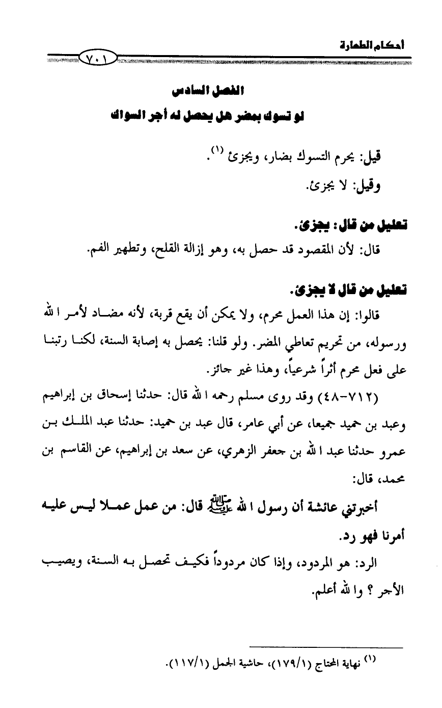 (¬1) نهاية المحتاج (1/ 179)، حاشية الجمل (1/ 117).