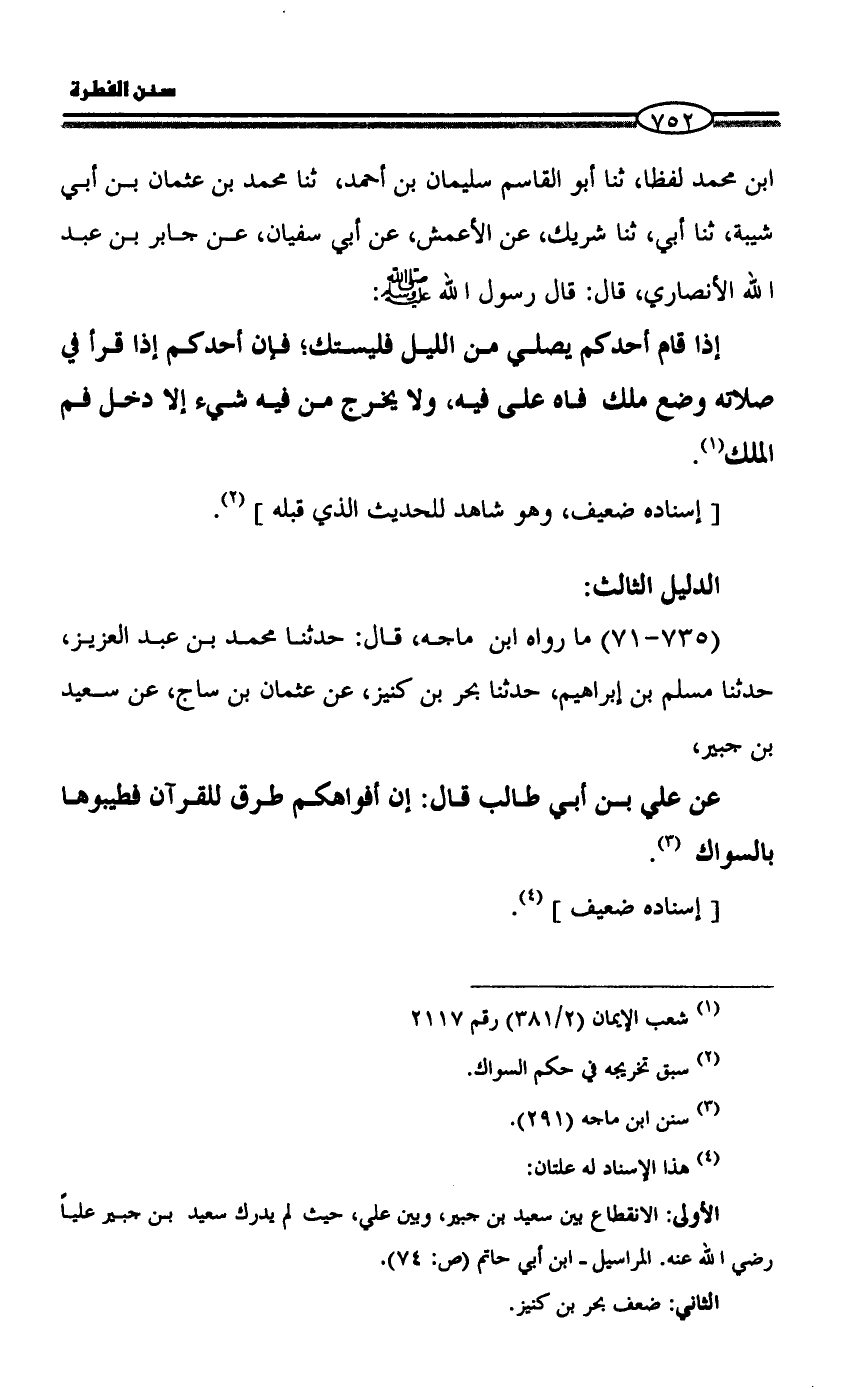 (735 - 71) ما رواه ابن ماجه، قال: حدثنا محمد بن عبد العزيز، حدثنا مسلم بن إبراهيم، حدثنا بحر بن كنيز، عن عثمان بن ساج، عن سعيد بن جبير،