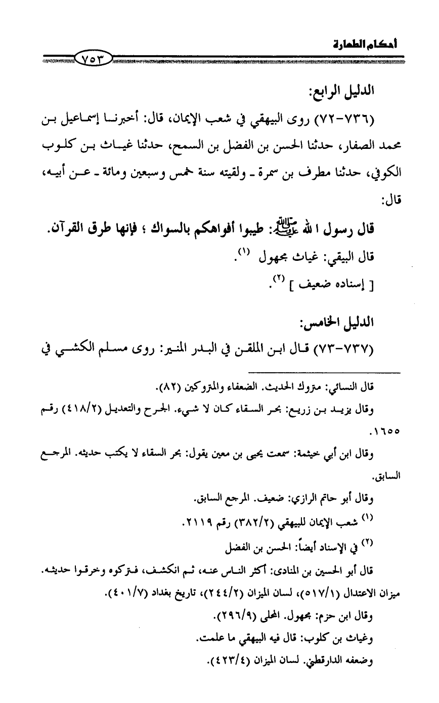 (737 - 73) قال ابن الملقن في البدر المنير: روى مسلم الكشي في