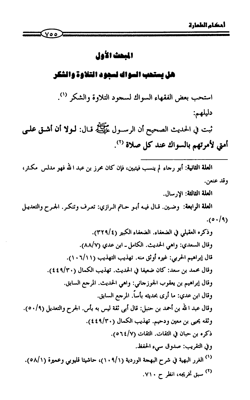 استحب بعض الفقهاء السواك لسجود التلاوة والشكر (¬1).