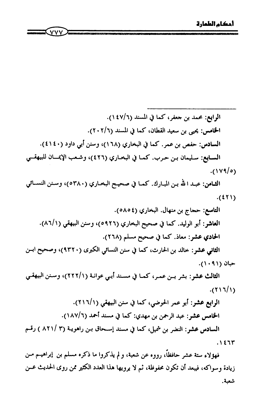 فهؤلاء ستة عشر حافظاً، رووه عن شعبة، ولم يذكروا ما ذكره مسلم بن إبراهيم من زيادة وسواكه، فيبعد أن تكون محفوظة، ثم لا يرويها هذا العدد الكثير ممن روى الحديث عن شعبة.