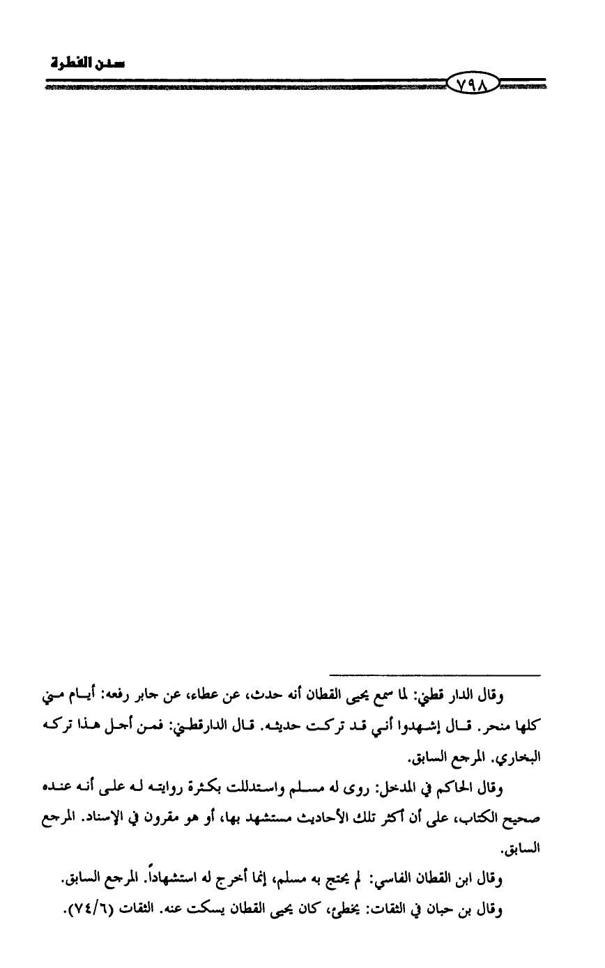= وقال الدارقطني: لما سمع يحيى القطان أنه حدث، عن عطاء، عن جابر رفعه: أيام مني كلها منحر. قال إشهدوا أني قد تركت حديثه. قال الدارقطني: فمن أجل هذا تركه البخاري. المرجع السابق.