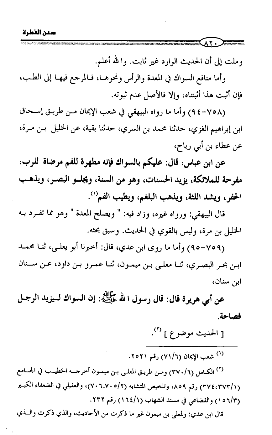 (758 - 94) وأما ما رواه البيهقي في شعب الإيمان من طريق إسحاق بن إبراهيم الغزي، حدثنا محمد بن السري، حدثنا بقية، عن الخليل بن مرة، عن عطاء بن أبي رباح،
