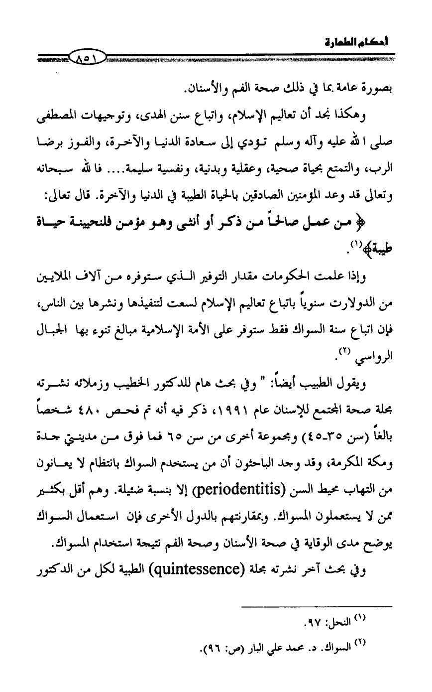(¬2) السواك. د. محمد علي البار (ص: 96).