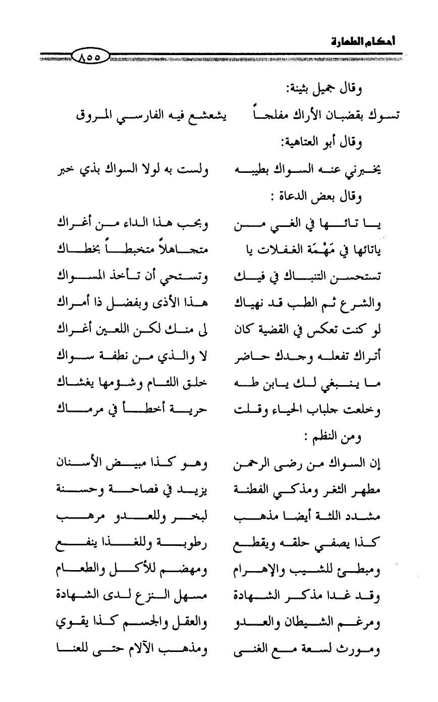 إن السواك من رضى الرحمن ... وهو كذا مبيض الأسنان