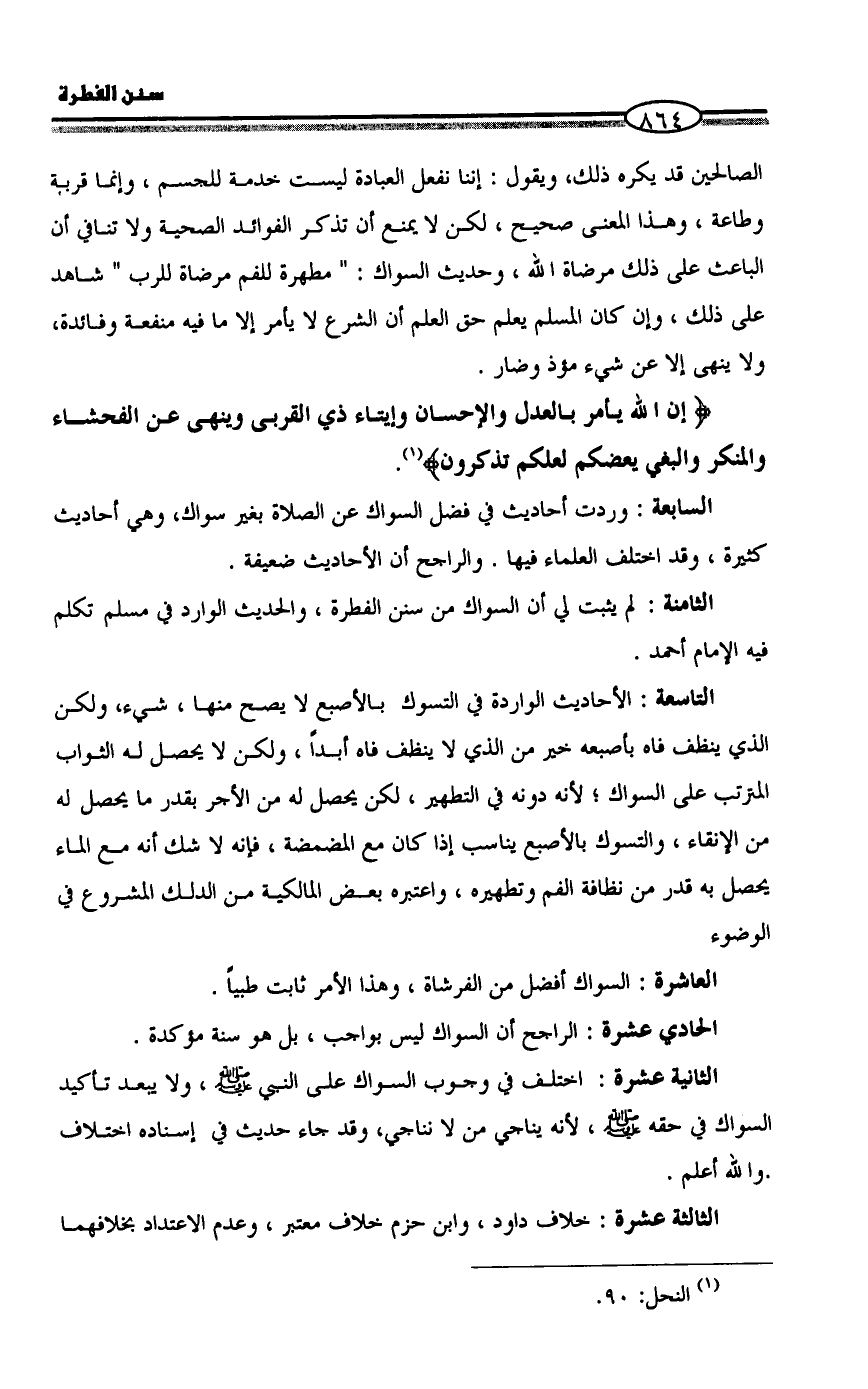 الثامنة: لم يثبت لي أن السواك من سنن الفطرة، والحديث الوارد في مسلم تكلم فيه الإمام أحمد.