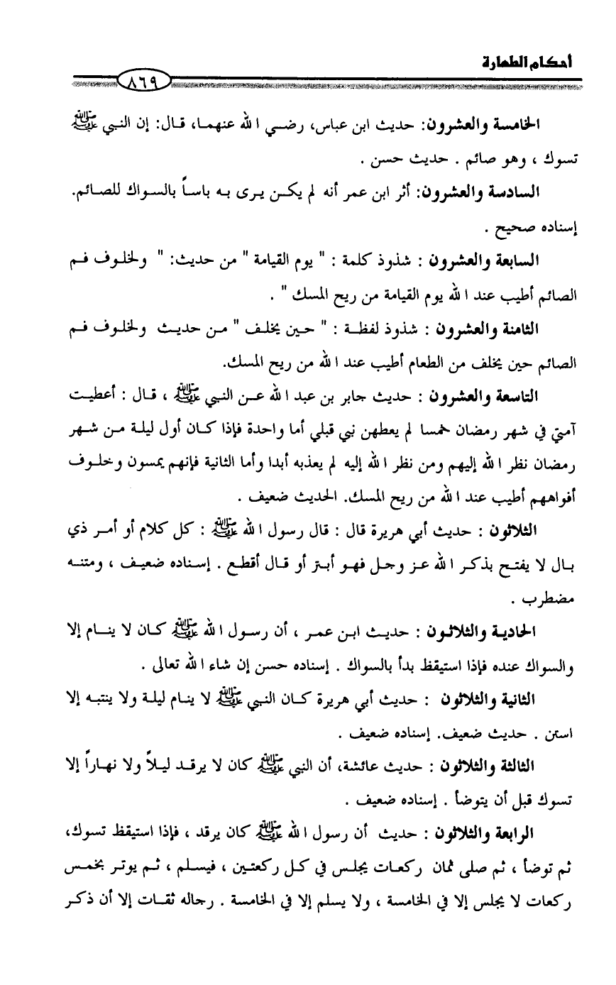 الخامسة والعشرون: حديث ابن عباس، رضي الله عنهما، قال: إن النبي - صلى الله عليه وسلم - تسوك، وهو صائم. حديث حسن.