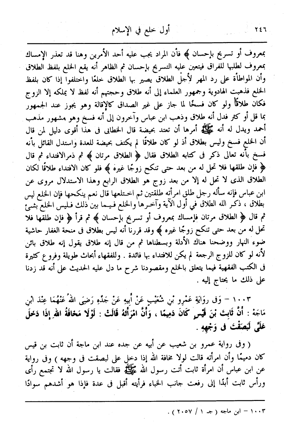 (1004) - وَلِأَحْمَدَ مِنْ حَدِيثِ سَهْلِ بْنِ أَبِي حَثْمَةَ: وَكَانَ ذَلِكَ أَوَّلَ خُلْعٍ فِي الْإِسْلَامِ