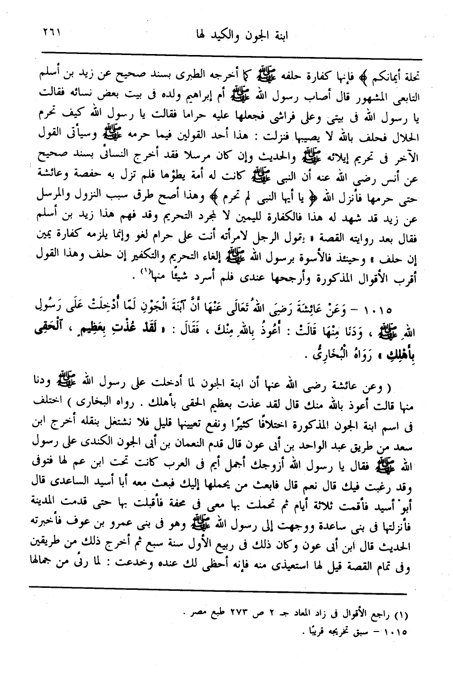 (1015) - وَعَنْ عَائِشَةَ - رَضِيَ اللَّهُ تَعَالَى عَنْهَا - «أَنَّ ابْنَةَ الْجَوْنِ لَمَّا أُدْخِلَتْ عَلَى رَسُولِ اللَّهِ - صَلَّى اللَّهُ عَلَيْهِ وَسَلَّمَ -، وَدَنَا مِنْهَا قَالَتْ: أَعُوذُ بِاَللَّهِ مِنْك، فَقَالَ: لَقَدْ عُذْت بِعَظِيمٍ، الْحَقِي بِأَهْلِك» رَوَاهُ الْبُخَارِيُّ.
