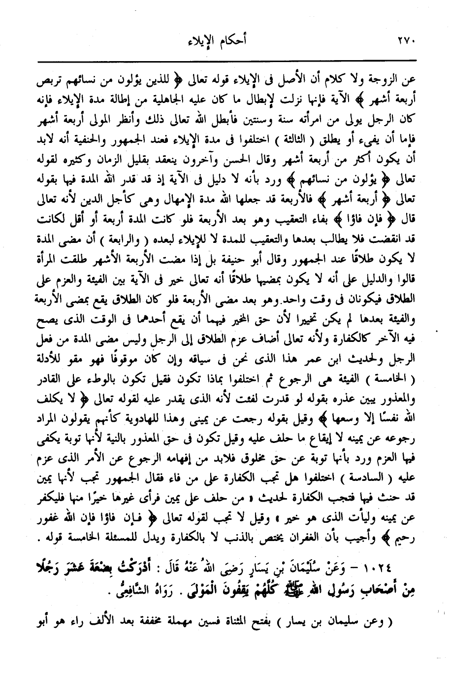 (1024) - وَعَنْ سُلَيْمَانَ بْنِ يَسَارٍ - رَضِيَ اللَّهُ عَنْهُ - قَالَ: أَدْرَكْت بِضْعَةَ عَشَرَ رَجُلًا مِنْ أَصْحَابِ رَسُولِ اللَّهِ - صَلَّى اللَّهُ عَلَيْهِ وَسَلَّمَ - كُلَّهُمْ يَقِفُونَ الْمُولَى.