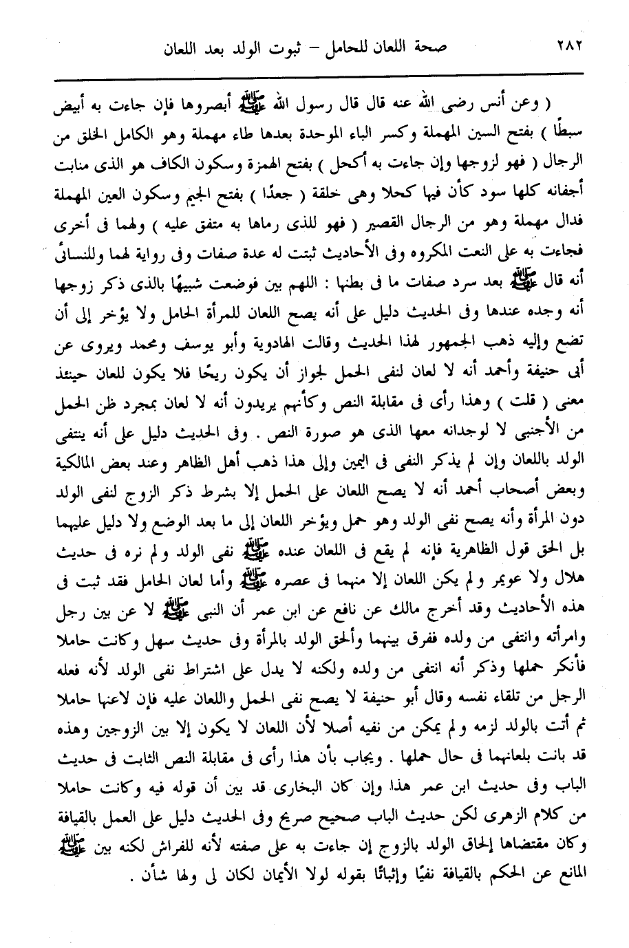 وَفِي حَدِيثِ سَهْلٍ وَكَانَتْ حَامِلًا فَأَنْكَرَ حَمْلَهَا وَذَكَر أَنَّهُ انْتَفَى مِنْ وَلَدِهِ وَلَكِنَّهُ لَا يَدُلُّ عَلَى اشْتِرَاطِ نَفْيِ الْوَلَدِ؛ لِأَنَّهُ فَعَلَهُ الرَّجُلُ مِنْ تِلْقَاءِ نَفْسِهِ، وَقَالَ أَبُو حَنِيفَةَ لَا يَصِحُّ نَفْيُ الْحَمْلِ وَاللِّعَانُ عَلَيْهِ، فَإِنْ لَاعَنَهَا حَامِلًا ثُمَّ أَتَتْ بِالْوَلَدِ لَزِمَهُ وَلَمْ يُمَكَّنْ مِنْ نَفْيِهِ أَصْلًا؛ لِأَنَّ اللِّعَانَ لَا يَكُونُ إلَّا بَيْنَ الزَّوْجَيْنِ، وَهَذِهِ قَدْ بَانَتْ بِلِعَانِهِمَا فِي حَالِ حَمْلِهَا. وَيُجَابُ بِأَنَّ هَذَا رَأْيٌ فِي مُقَابَلَةِ النَّصِّ الثَّابِتِ فِي حَدِيثِ الْبَابِ.