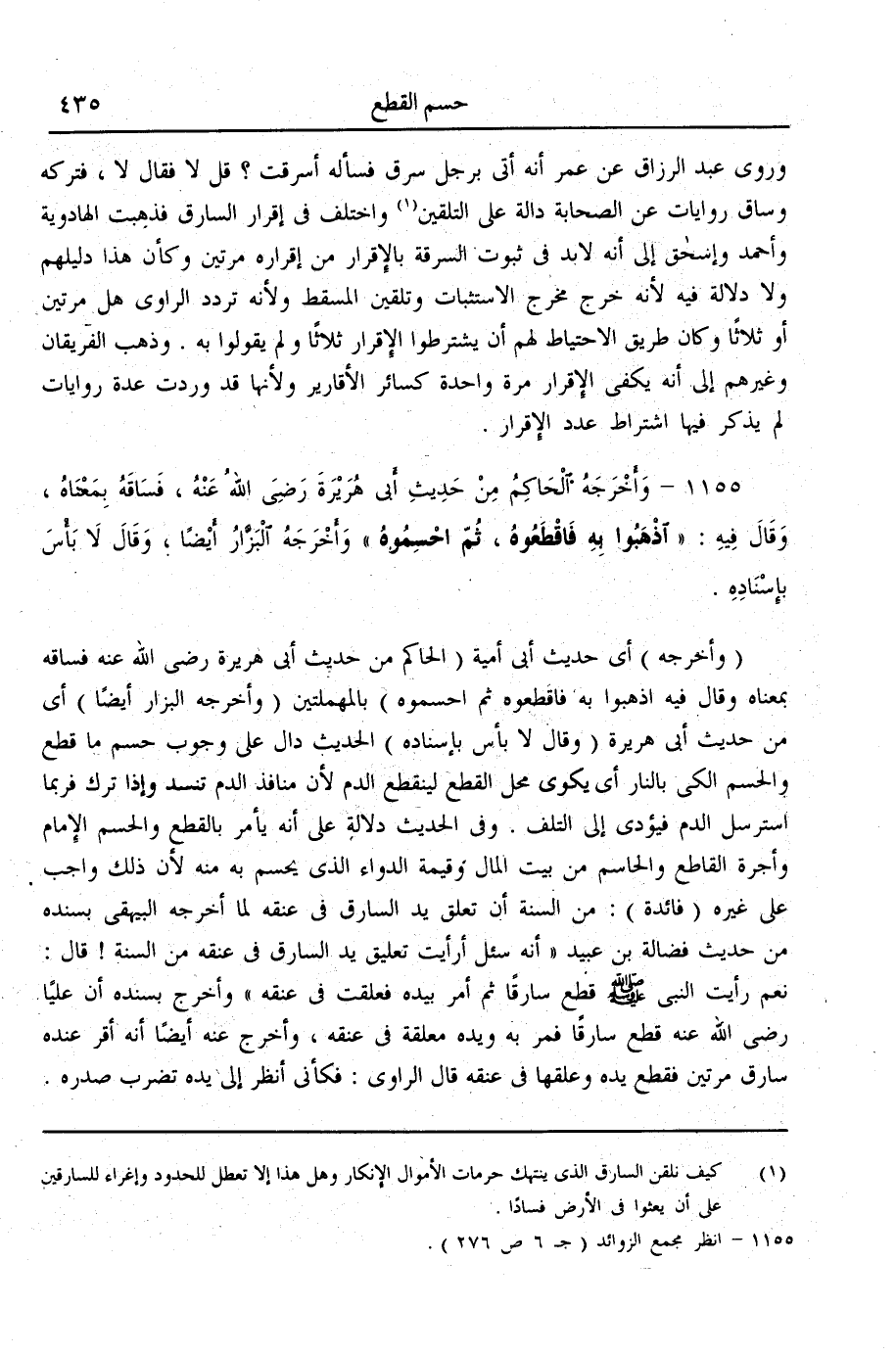 (1155) - وَأَخْرَجَهُ الْحَاكِمُ مِنْ حَدِيثِ أَبِي هُرَيْرَةَ - رَضِيَ اللَّهُ عَنْهُ -، «فَسَاقَهُ بِمُعْتَادٍ، وَقَالَ فِيهِ: اذْهَبُوا بِهِ فَاقْطَعُوهُ، ثُمَّ احْسِمُوهُ» وَأَخْرَجَهُ الْبَزَّارُ أَيْضًا، وَقَالَ: لَا بَأْسَ بِإِسْنَادِهِ