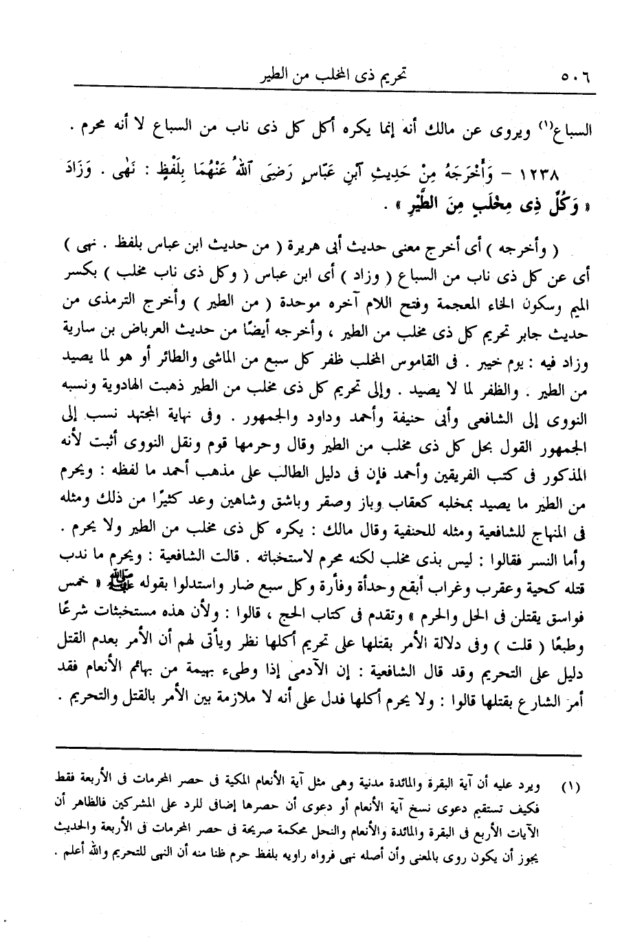 (1238) - وَأَخْرَجَهُ مِنْ حَدِيثِ ابْنِ عَبَّاسٍ - رَضِيَ اللَّهُ عَنْهُمَا - بِلَفْظِ: نَهَى. وَزَادَ " وَكُلِّ ذِي مِخْلَبٍ مِنْ الطَّيْرِ "