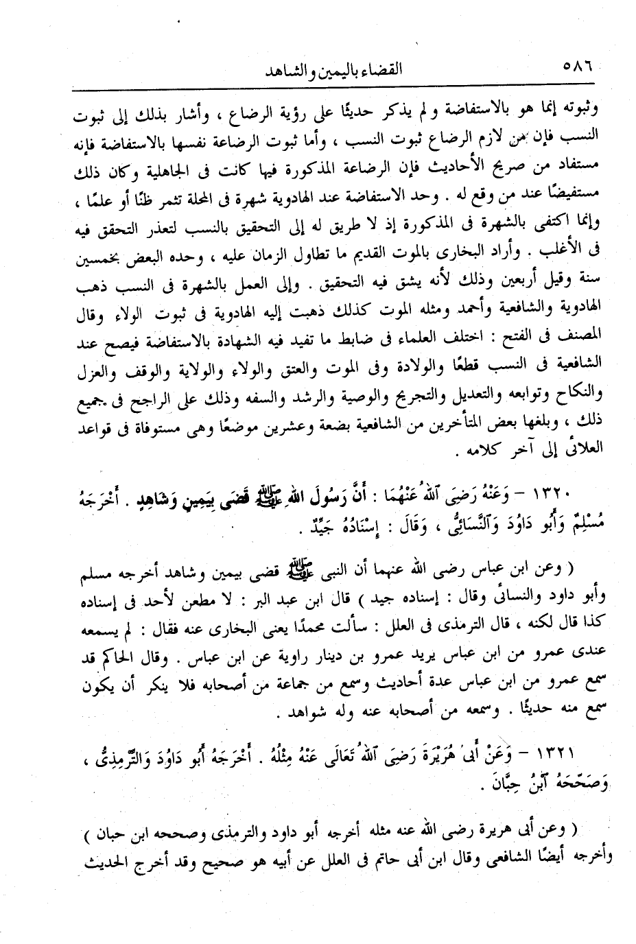 (1320) - وَعَنْهُ - رَضِيَ اللَّهُ عَنْهُمَا -: «أَنَّ رَسُولَ اللَّهِ - صَلَّى اللَّهُ عَلَيْهِ وَسَلَّمَ - قَضَى بِيَمِينٍ وَشَاهِدٍ» . أَخْرَجَهُ مُسْلِمٌ وَأَبُو دَاوُد وَالنَّسَائِيُّ، وَقَالَ: إسْنَادُهُ جَيِّدٌ