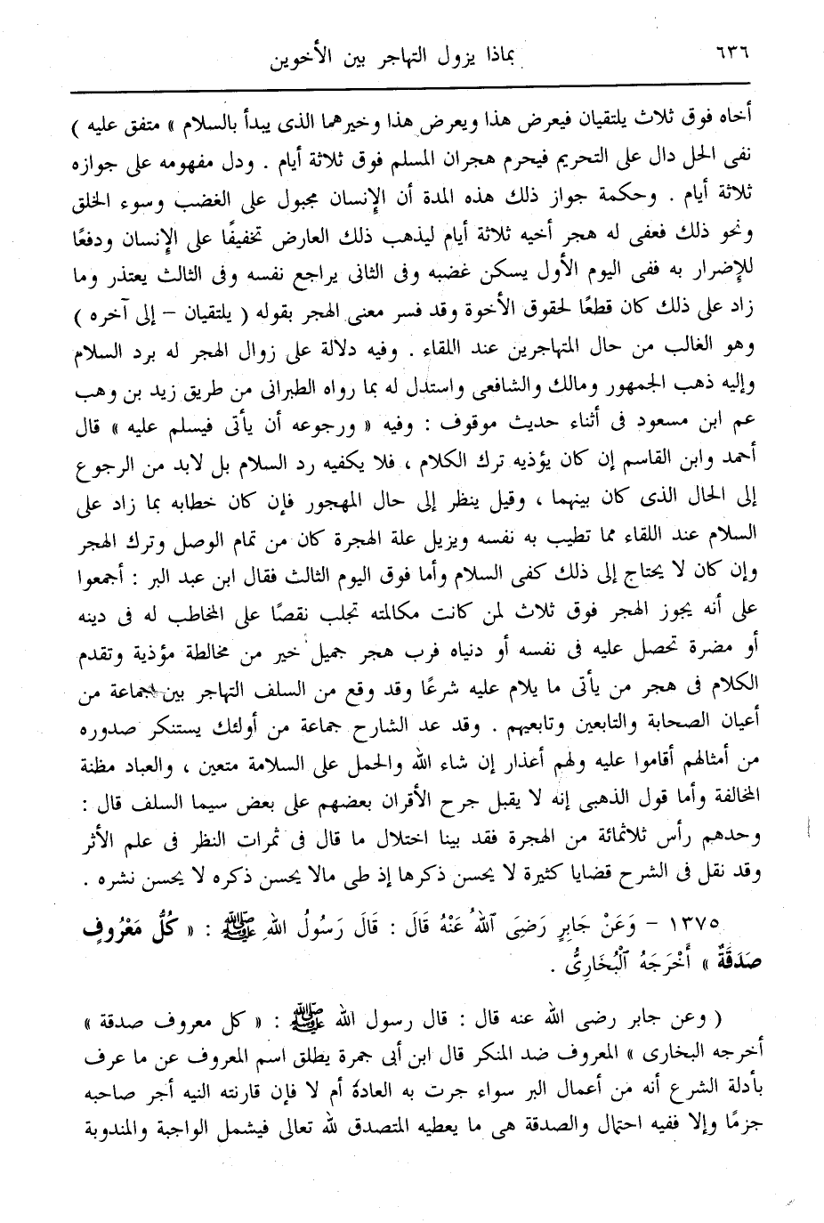 (1375) - وَعَنْ جَابِرٍ - رَضِيَ اللَّهُ عَنْهُ - قَالَ: قَالَ رَسُولُ اللَّهِ - صَلَّى اللَّهُ عَلَيْهِ وَسَلَّمَ -: «كُلُّ مَعْرُوفٍ صَدَقَةٌ» أَخْرَجَهُ الْبُخَارِيُّ
