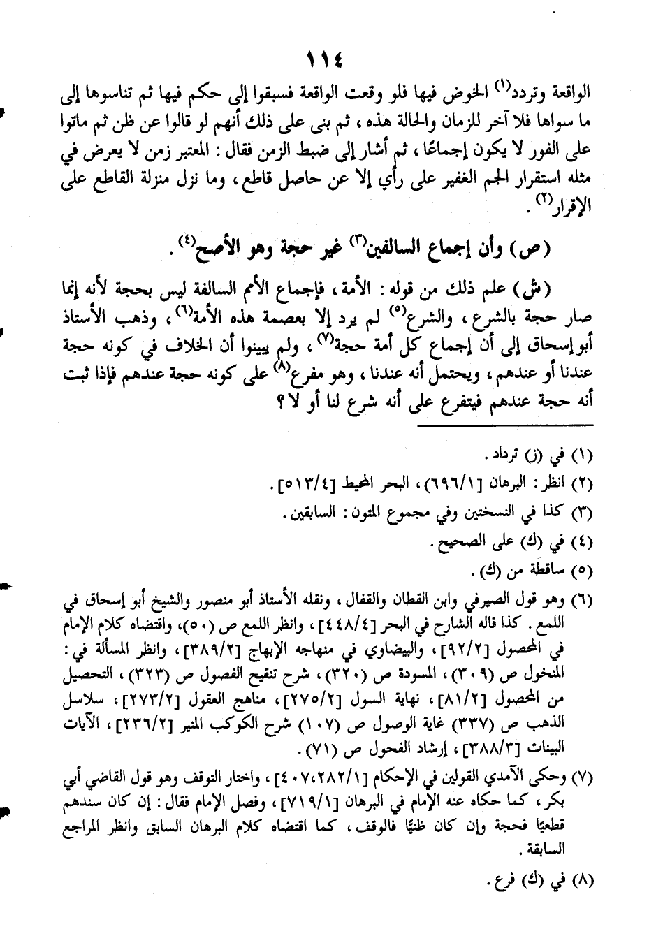 (ش): علم ذلك من قوله: الأمة، فإجماع الأمم السالفة ليس بحجة لأنه إنما صار حجة بالشرع، والشرع لم يرد إلا بعصمة هذه الأمة، وذهب الأستاذ أبو إسحاق إلى أن إجماع كل أمة حجة ولم يبينوا أن الخلاف في كونه حجة عندنا أو عندهم، ويحتمل أنه عندنا، وهو مفرع على كونه حجة عندهم فإذا ثبت أنه حجة عندهم فيتفرع على أنه شرع لنا أو لا؟