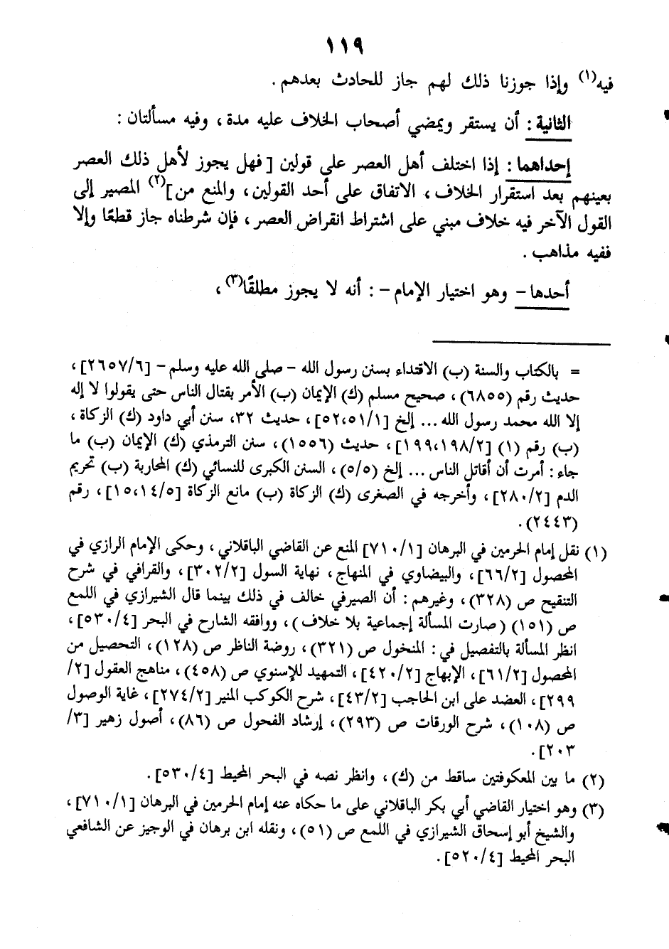 إحداهما: إذا اختلف أهل العصر على قولين فهل يجوز لأهل ذلك العصر بعينهم بعد استقرار الخلاف، الاتفاق على أحد القولين، والمنع من المصير إلى القول الآخر فيه خلاف مبني على اشتراط انقراض العصر، فإن شرطناه جاز قطعاً وإلا ففيه مذاهب.