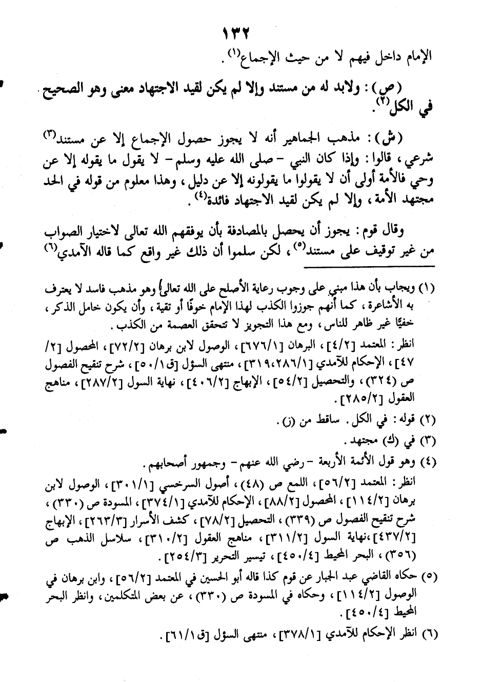 (ش): مذهب الجماهير أنه لا يجوز حصول الإجماع إلا عن مستند شرعي، قالوا: وإذا كان النبي صَلَّى اللهُ عَلَيْهِ وَسَلَّمَ لا يقول ما يقوله إلا عن وحي فالأمة أولى أن لا يقولوا ما يقولونه إلا عن دليل، وهذا معلوم من قوله في الحد مجتهد الأمة، وإلا لم يكن لقيد الاجتهاد فائدة.