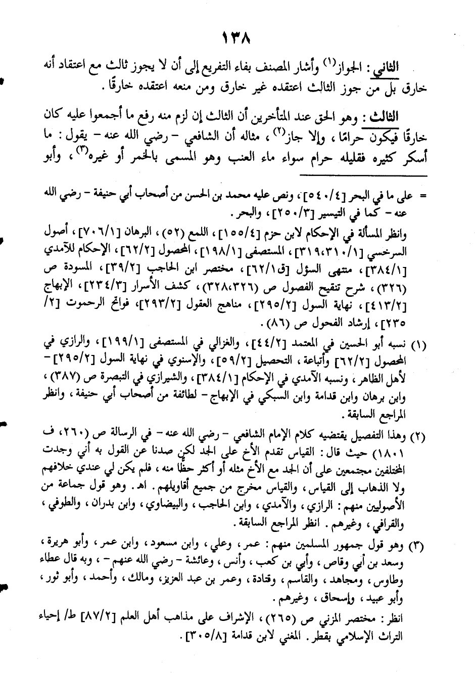 الثالث: وهو الحق عند المتأخرين أن الثالث إن لزم منه رفع ما أجمعوا عليه كان خارقاً فيكون حراماً، وإلا جاز، مثاله أن الشافعي رضي الله عنه يقول: ما أسكر كثيره فقليله حرام سواء ماء العنب وهو المسمى بالخمر أو غيره وأبو