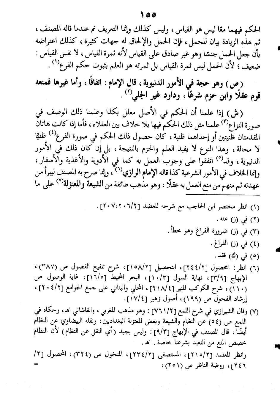 (ش): إذا علمنا أن الحكم في الأصل معلل بكذا وعلمنا ذلك الوصف في صورة النزاع علمنا مثل ذلك الحكم فيها بلا خلاف بين العقلاء، فأما إذا كانت هاتان المقدمتان ظنيتين أو إحداهما ظنية، كان حصول ذلك الحكم في صورة الفرع ظنياً لا محالة، وهذا النوع لا يفيد العلم والجزم بالنتيجة بل إن كان ذلك في الأمور الدنيوية وقد اتفقوا على وجوب العمل به كما في الأدوية والأغذية والأسفار، وإنما الخلاف في الأمور الشرعية كذا قاله الإمام الرازي، ـ وإنما صرح به المصنف ليبرأ من عهدته ثم منهم من منع العمل به عقلاً، وهو مذهب طائفة من الشيعة والمعتزلة على ما