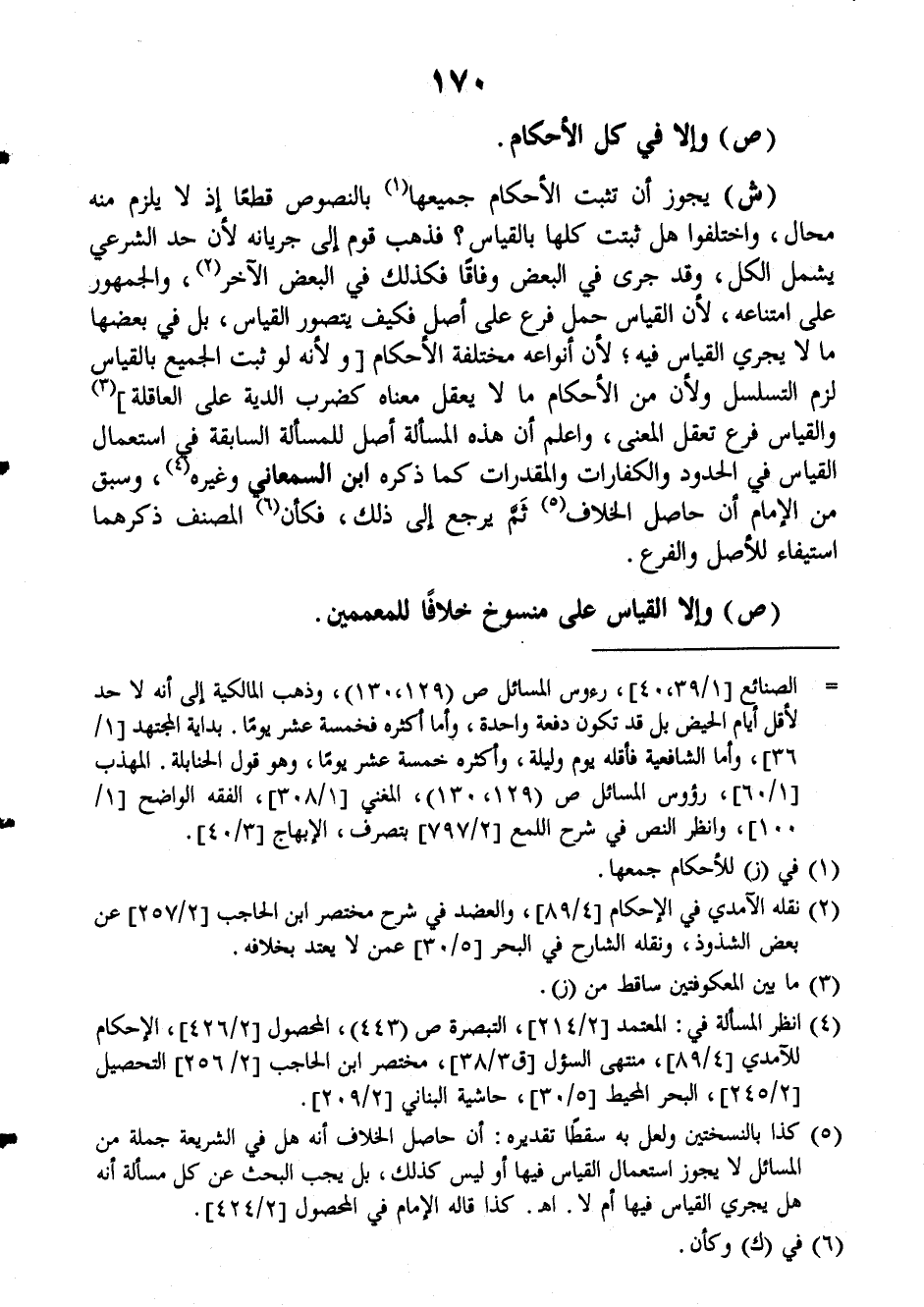 (ش): يجوز أن تثبت الأحكام جميعها بالنصوص قطعاً إذ لا يلزم منه محال، واختلفوا هل ثبتت كلها بالقياس؟ فذهب قوم إلى جريانه لأن حد الشرعي يشمل الكل، وقد جرى في البعض وفاقاً فكذلك في البعض الآخر، والجمهور على امتناعه، لأن القياس حمل فرع على أصل فكيف يتصور القياس، بل في بعضها ما لا يجري القياس فيه، لأن أنواعه مختلفة الأحكام ولأنه لو ثبت الجميع بالقياس لزم التسلسل ولأن من الأحكام ما لا يعقل معناه كضرب الدية على العاقلة والقياس فرع تعقل المعنى، واعلم أن هذه المسألة أصل للمسألة السابقة في استعمال القياس في الحدود والكفارات والمقدرات كما ذكره ابن السمعاني وغيره، وسبق من الإمام أن حاصل الخلاف، ثم يرجع إلى ذلك، فكأن المصنف ذكرهما استيفاء للأصل والفرع.