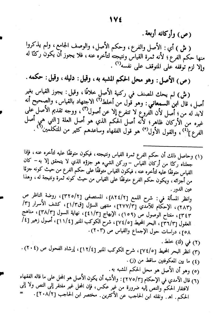 (ش): لم يحك المصنف في ركنية الأصل خلافاً، وقيل: يجوز القياس بغير أصل، قال ابن السمعاني: وهو قول من أخلط الاجتهاد بالقياس، والصحيح أنه لا بد له من، أصل لأن الفروع لا تتفرع إلا عن أصول، ووجه تقديم الأصل على غيره من الأركان ظاهر، لأنه أصل الحكم الذي هو أصل العلة التي هي أصل الفرع والقول الأول، هو قول الفقهاء وساعدهم كثير من المتكلمين.