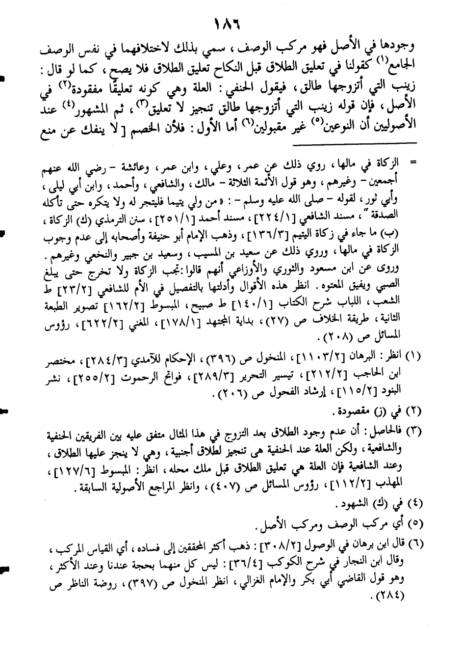 وجودها في الأصل فهو مركب الوصف، سمي بذلك لاختلافهما في نفس الوصف الجامع كقولنا في تعليق الطلاق قبل النكاح تعليق الطلاق فلا يصح، كما لو قال: زينب التي أتزوجها طالق، فيقول الحنفي: العلة وهي كونه تعليقاً مفقودة في الأصل، فإن قوله زينب التي أتزوجها طالق تنجيز لا تعليق، ثم المشهور عند الأصوليين أن النوعيين غير مقبولين أما الأول: فلأن الخصم لا ينفك عن منع