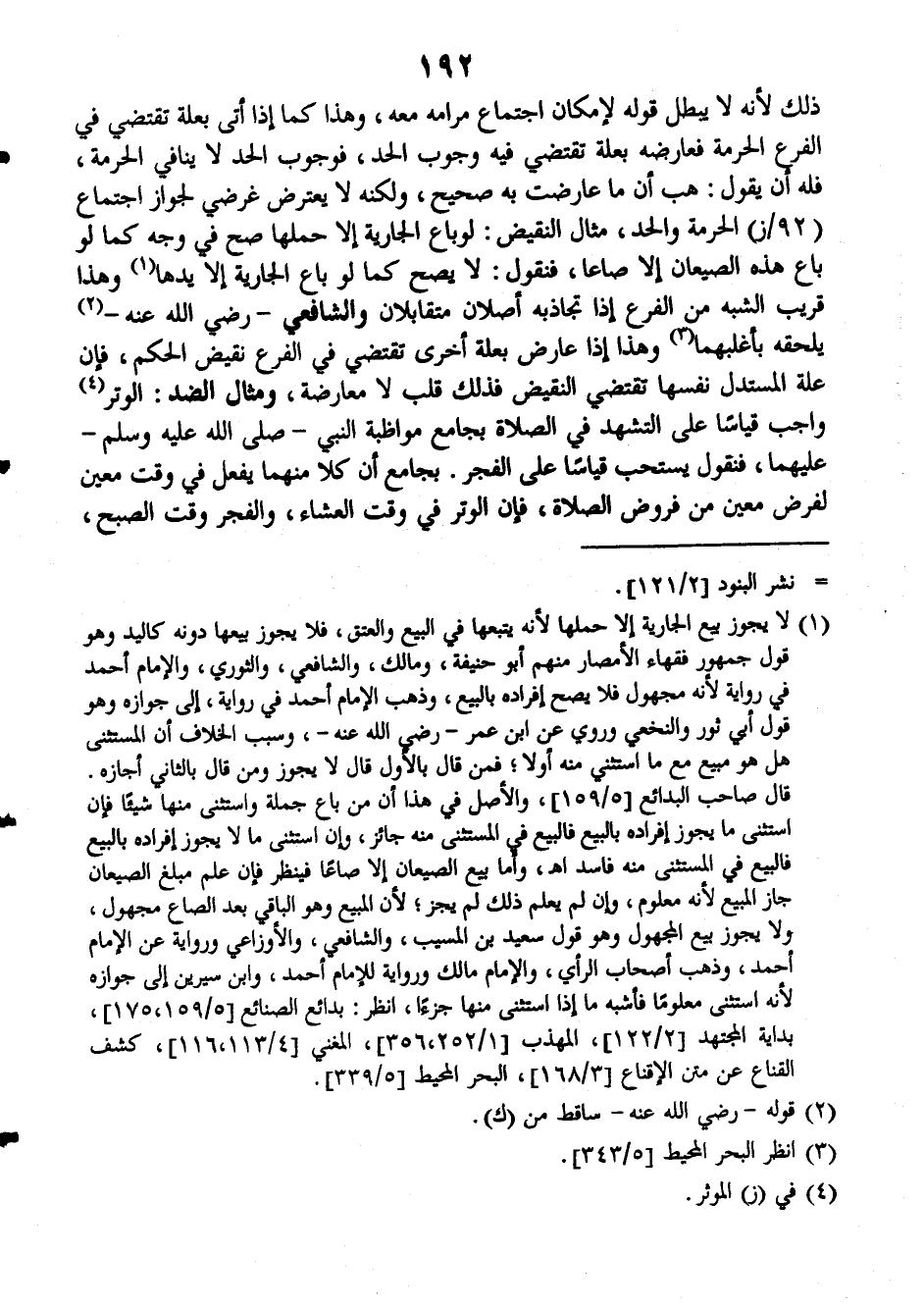ذلك لأنه لا يبطل قوله لإمكان اجتماع مرامه معه، وهذا كما إذا أتى بعلة تقتضي في الفرع الحرمة فعارضه بعلة تقتضي فيه وجوب الحد، فوجوب الحد لا ينافي الحرمة، فله أن يقول: هب إن ما عارضت به صحيح، ولكنه لا يعترض غرضي لجواز اجتماع (٩٢/ز) الحرمة والحد، مثال النقيض: لو باع الجارية إلا حملها صح في وجه كما لو باع هذه الصيعان إلا صاعاً، فنقول: لا يصح كما لو باع الجارية إلا يدها وهذا قريب الشبه من الفرع إذا تجاذبه أصلان متقابلان والشافعي رضي الله عنه يلحقه بأغلبهما وهذا إذا عارض بعلة أخرى تقتضي في الفرع نقيض الحكم، فإن علة المستدل نفسها تقتضي النقيض فذلك قلب لا معارضة، ومثال الضد: الوتر واجب قياساً على التشهد في الصلاة بجامع مواظبة النبي صَلَّى اللهُ عَلَيْهِ وَسَلَّمَ عليهما، فنقول يستحب قياساً على الفجر.